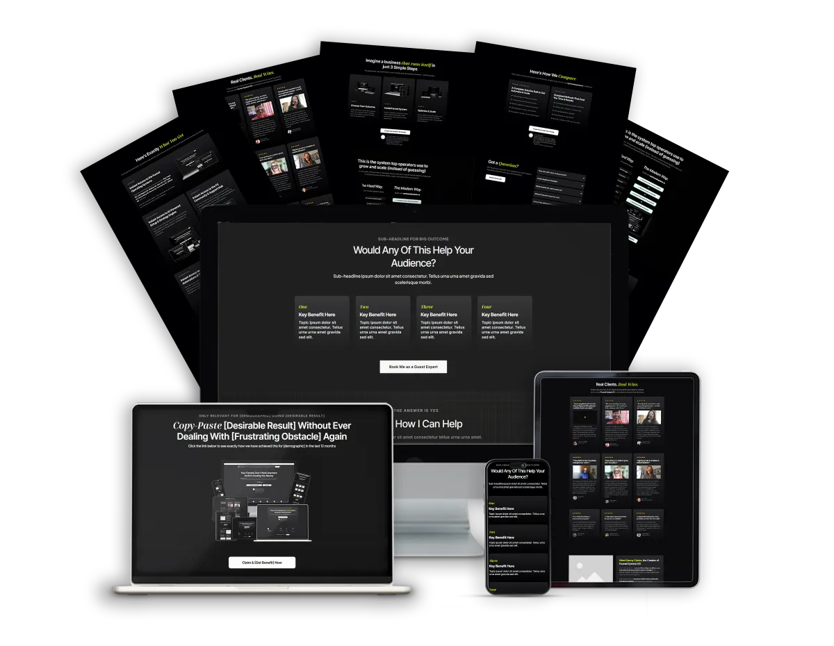 Install the exact funnels your business needs: High Ticket OS, Lead Magnet OS, Webinar OS, Quiz OS, Low Ticket OS, Onboarding OS, Review OS, Community OS, Affiliate OS, and more.